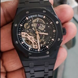 -Uniqueness with the see through mechanical dial with touch ups of black & white