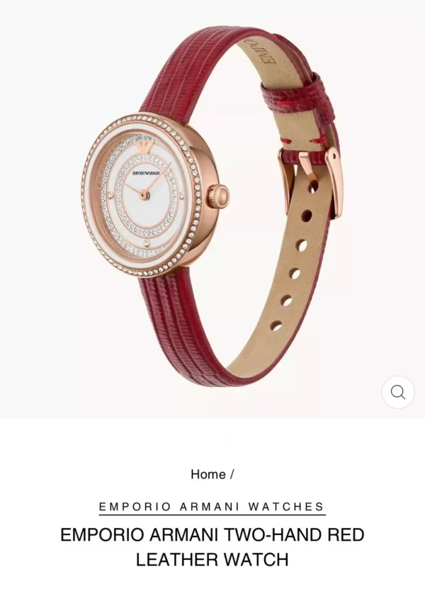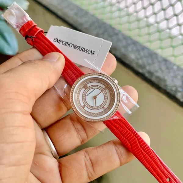 The Emporio Armani Two-Hand Red Leather Watch (AR11532) is a perfect blend of luxury, sophistication, and modern design. Designed for women, this premium-quality timepiece features a sleek red leather strap that complements any outfit effortlessly. Whether you’re heading to a business meeting or a casual outing, this stylish quartz watch adds a touch of class to your wrist.