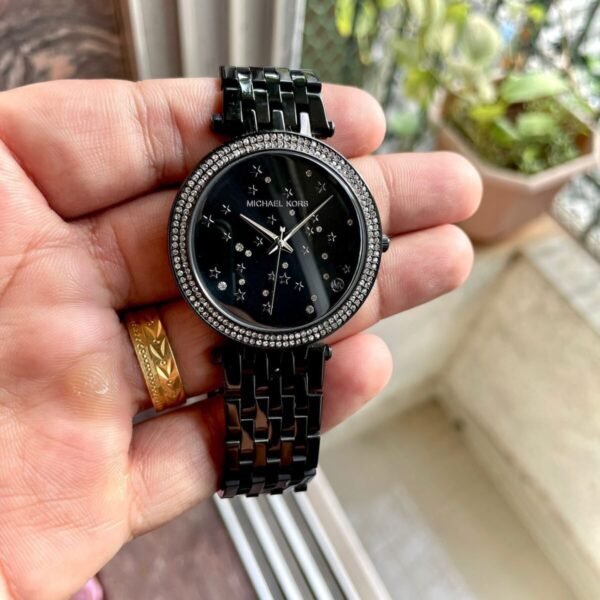 # Feature-Working 24 hour country timing, Stainless Steel Black chain, Stars & Daimonds crystal dial, Black Tone case band with Black dial Original Flip lock, Steel Back *Top Quality Japanese Machinery Original Machinery* ❤