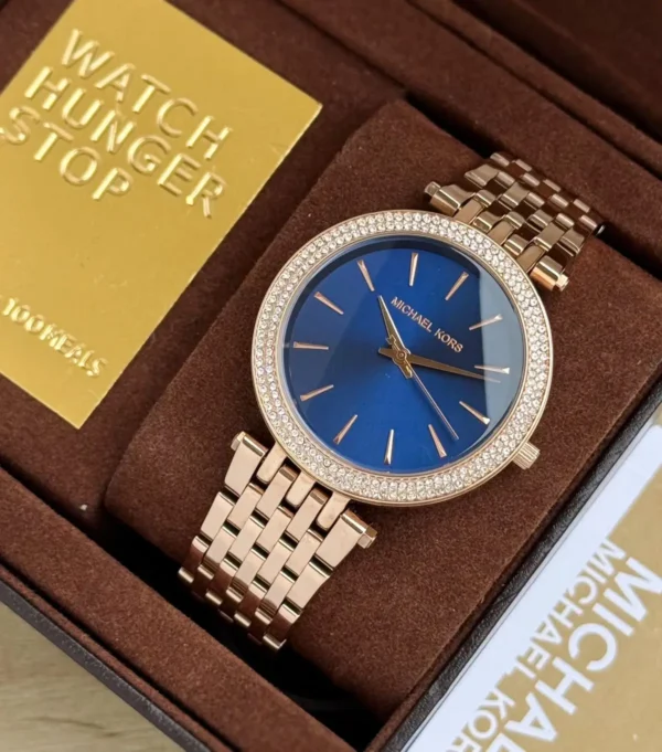 Elevate your style with the Michael Kors Mother Of Pearl Dial Watch, designed for women who appreciate sophisticated timepieces. This premium 7A first copy features a turquoise mother-of-pearl dial, a crystallized bezel, and a full stainless-steel rose gold chain for a touch of glamour. The scratch-resistant build and Japanese quartz movement ensure durability and precision.