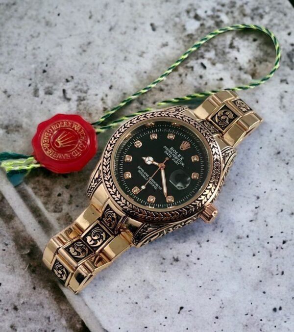 One of the standout features of this Hand Engraved Rolex Watch is its heavy butterfly lock, ensuring a secure and comfortable fit. Every detail of this timepiece has been carefully considered to provide a luxurious and captivating experience.