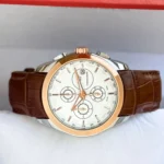 The deep brown and copper tones enhance its sophisticated appeal, making it a perfect match for both casual and formal wear. Equipped with a high-end battery-operated machine, this watch ensures accuracy and long-lasting performance.