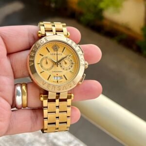 Introducing the Aion Chronograph golden watch by Versace, a bi-complex chronograph with a sporty yet highly stylish attitude.